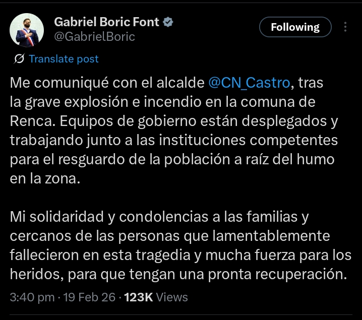 President Gabriel Boric, who was on official duty in Rapa Nui at the time, interrupted his agenda to address the incident. He confirmed the four fatalities and described the event as a serious accident, extending condolences to the families of the victims and pledging continued government monitoring of the situation.