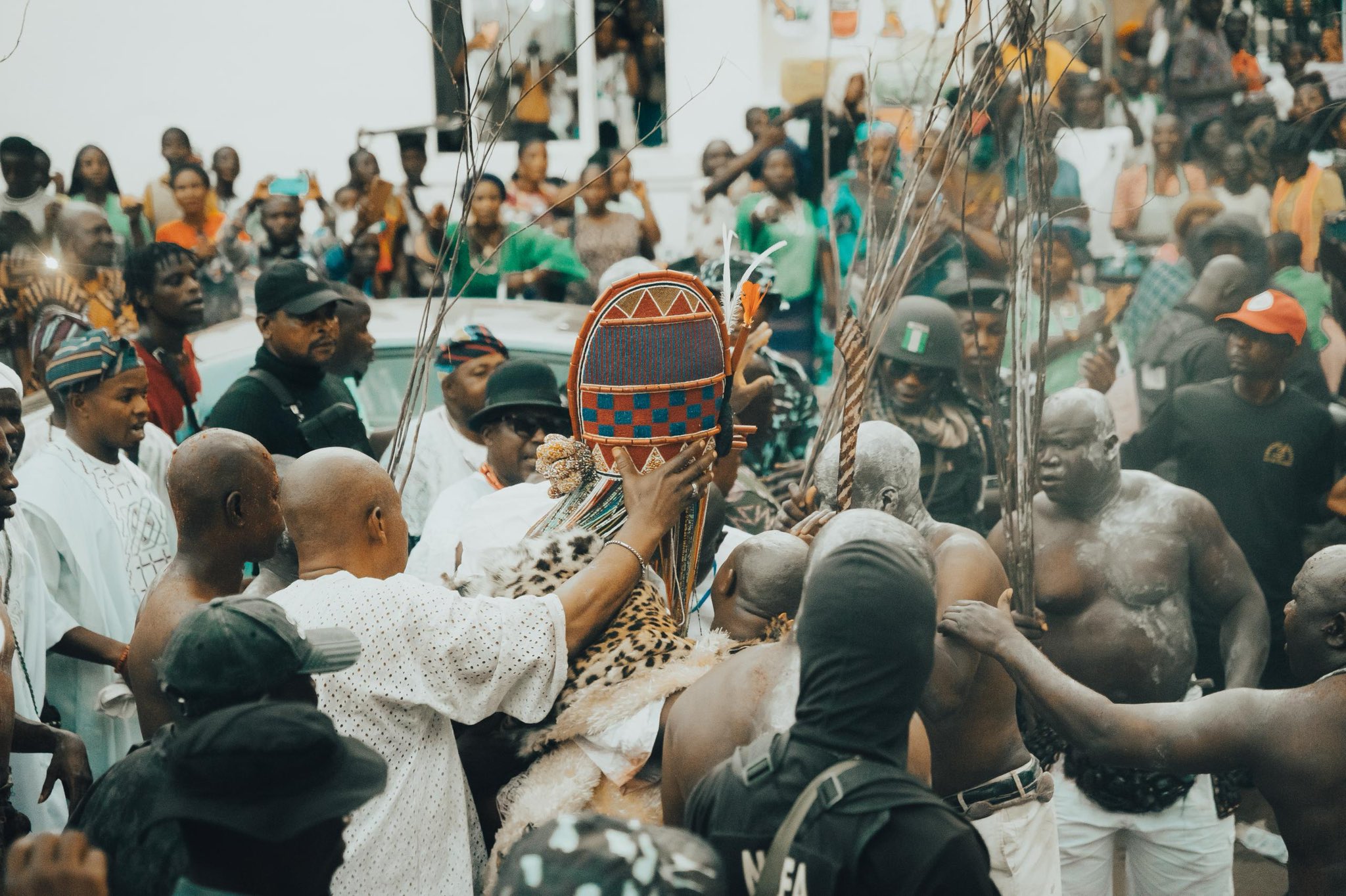This homage signals to all that the Ooni’s transformation from earthly king to spiritual intermediary is near. The atmosphere thickens with reverence and awe every chant, every footfall carries the weight of centuries.