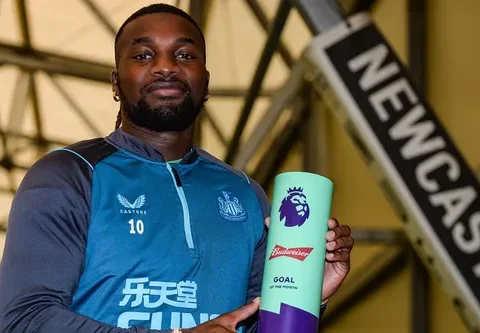 Newcastle United’s Allan Saint-Maximin on Friday won the award for the August Budweiser 'Goal of the Month' for his stunning volley against Wolverhampton Wanderers.