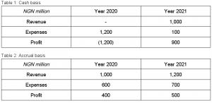 Accrual basis has special ways of capturing the excess or shortage of cash for the recognised transactions. For the two years rent example, you are not allowed to capture the two years rent as expense in just the current year as that means you will end up capturing no rent expense for the next year. Rather, you will capture just one year value as rent expense in the current year and put the remaining one year value as a prepayment (you can think of it as an asset to be used next year). What is wrong about capturing the two years rent as an expense in the current year is that it ignores the fact that the rent is for two years and creates a problem for business forecasting. Cash basis of running business creates an unnatural cycle in the business financial records – there will be years of worryingly high expenses and low revenue followed by years of very low expenses and high revenue. And all these won’t be because the business experienced any operational or significant change, but because customers are not paying you immediately.