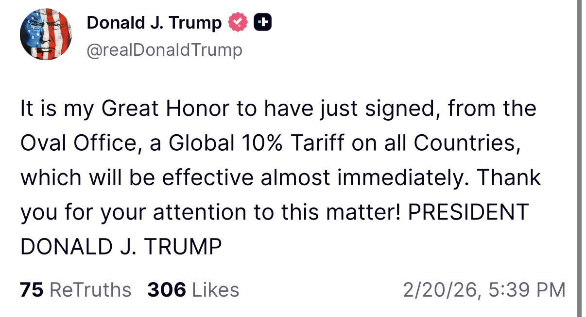 The action comes just hours after the Supreme Court of the United States struck down key elements of Trump’s earlier tariff regime. In a 6–3 decision, the court ruled that the president had exceeded his authority under the International Emergency Economic Powers Act (IEEPA) when he imposed broad “reciprocal” tariffs on multiple trading partners.